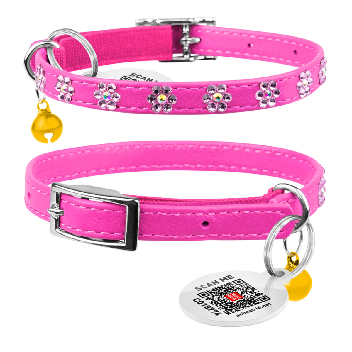 Нашийник WAUCAT Glamour з резинкою та стразами “Квітка” для котів, ширина 9мм, довжина 22-30см