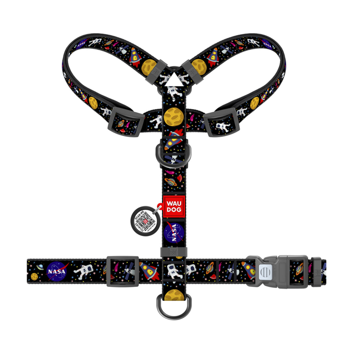 Будьте першим, хто залишив відгук на “Шлея анатомічна H-подібна WAUDOG Nylon з QR-паспортом, малюнок “NASA”, М, Ш 20 мм, А 42-68”